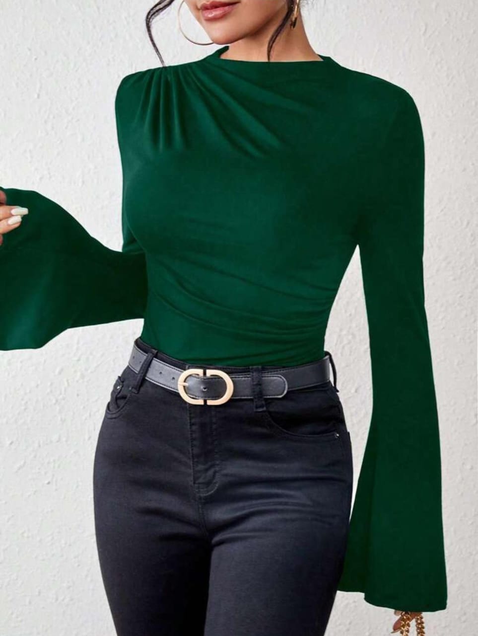 Stylish casual T-shirt featuring wide sleeves and a trendy front twist design. Made from soft, breathable fabric for a comfortable and fashionable look, perfect for everyday wear, casual outings, or relaxed weekends.