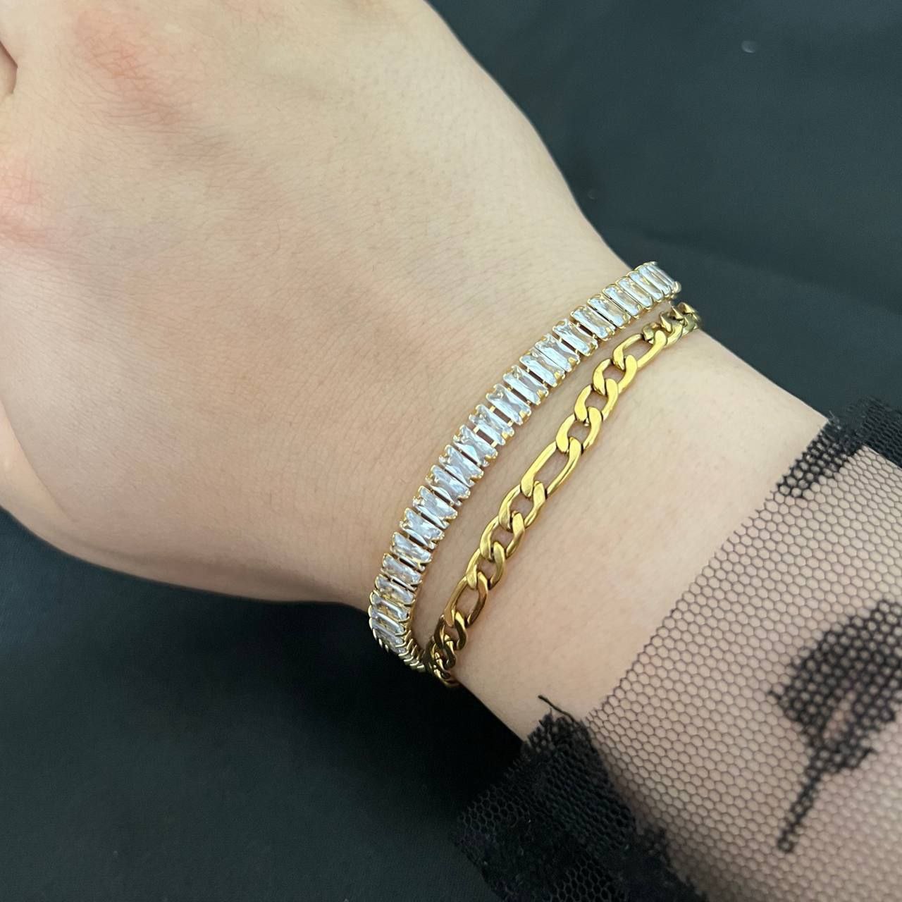 Elegant double-row 316L pure stainless steel bracelet adorned with sparkling baguette zircon stones for a sophisticated look.
