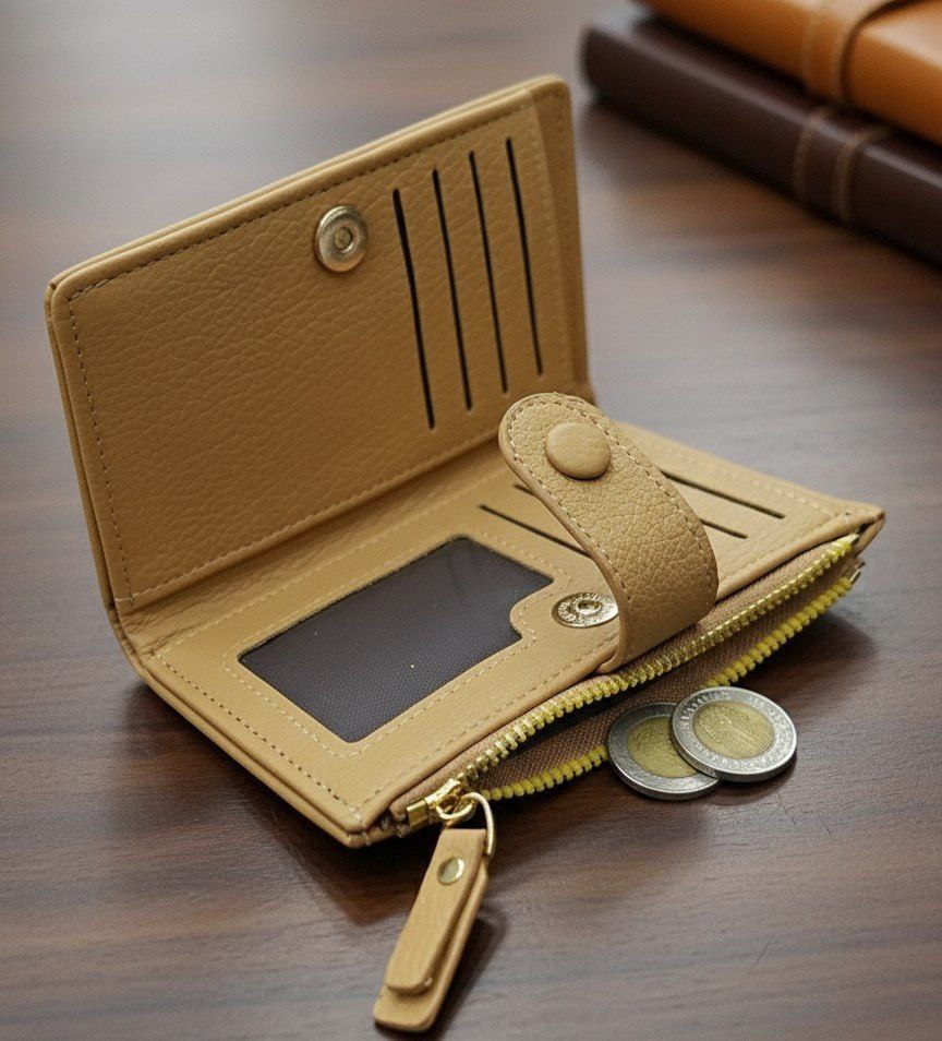 Medium-sized wallet crafted from premium high-quality leather, combining elegance and practicality.