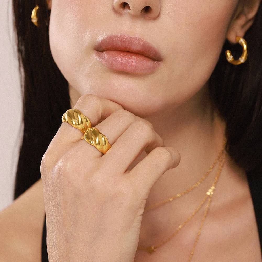 Luxurious Pure 316 Stainless Steel Ring crafted from heavy, durable material, plated with real gold for a lasting shine.