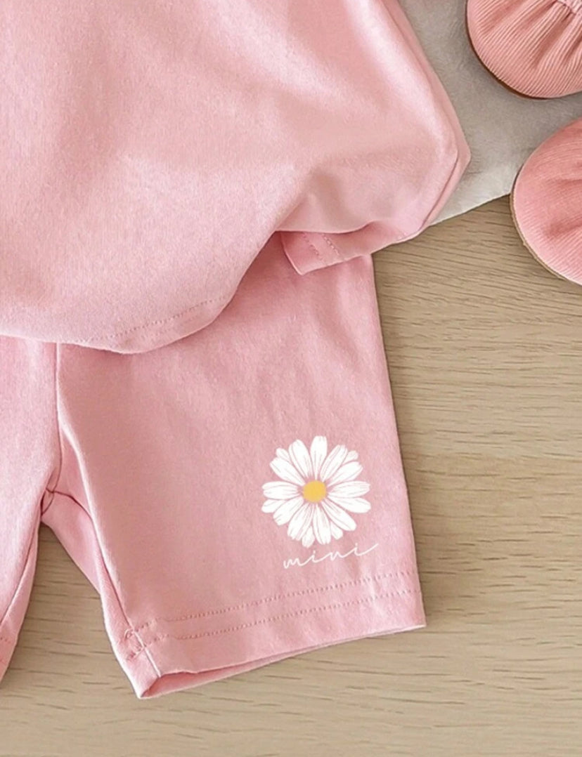 SHEIN ModeFlare Wear Baby Girl Casual Floral Top & Shorts Set – Summer Outfit (95% Cotton)