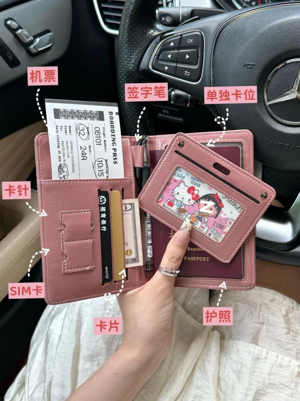 A passport holder with a redesigned interior layout that meets all your travel needs. It includes dedicated spaces for your passport, cards, and other essentials, keeping everything organized and easy to access. Crafted from high-quality materials, this holder combines practicality with a sleek and stylish design, perfect for both travel and everyday use.