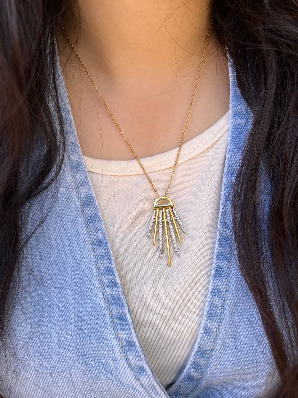 Elevate your style with this Stainless Steel 316 Necklace featuring a gold-plated pendant adorned with sparkling crystals.