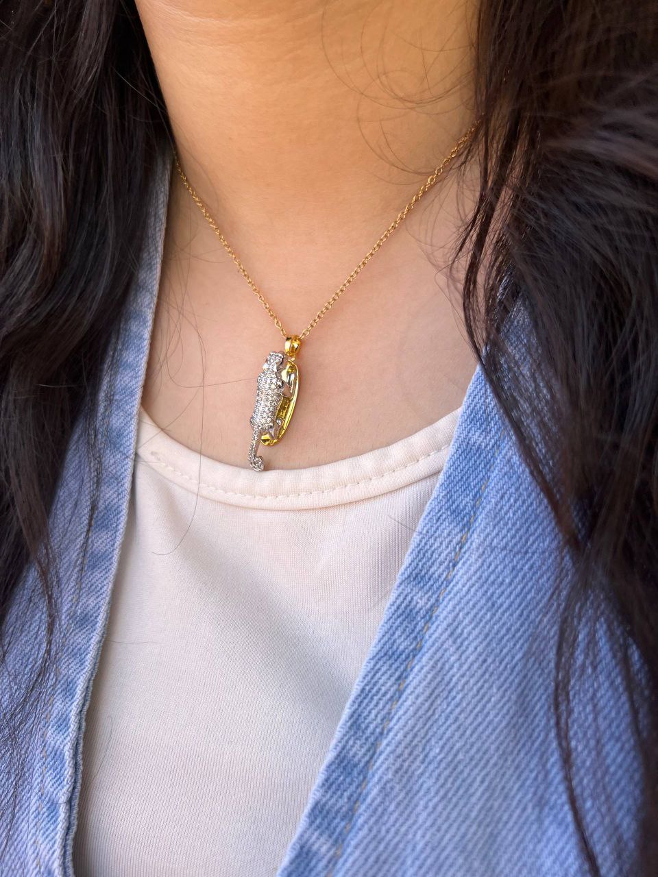 Elevate your style with this Stainless Steel 316 Necklace featuring a gold-plated pendant adorned with sparkling crystals.