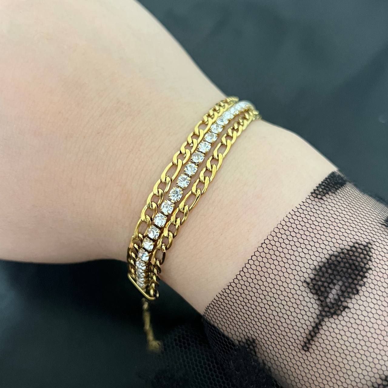 Luxurious triple-row 316L pure stainless steel bracelet adorned with sparkling zircon stones for a sophisticated look.